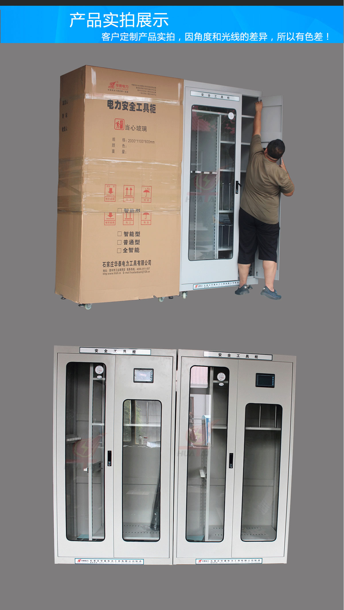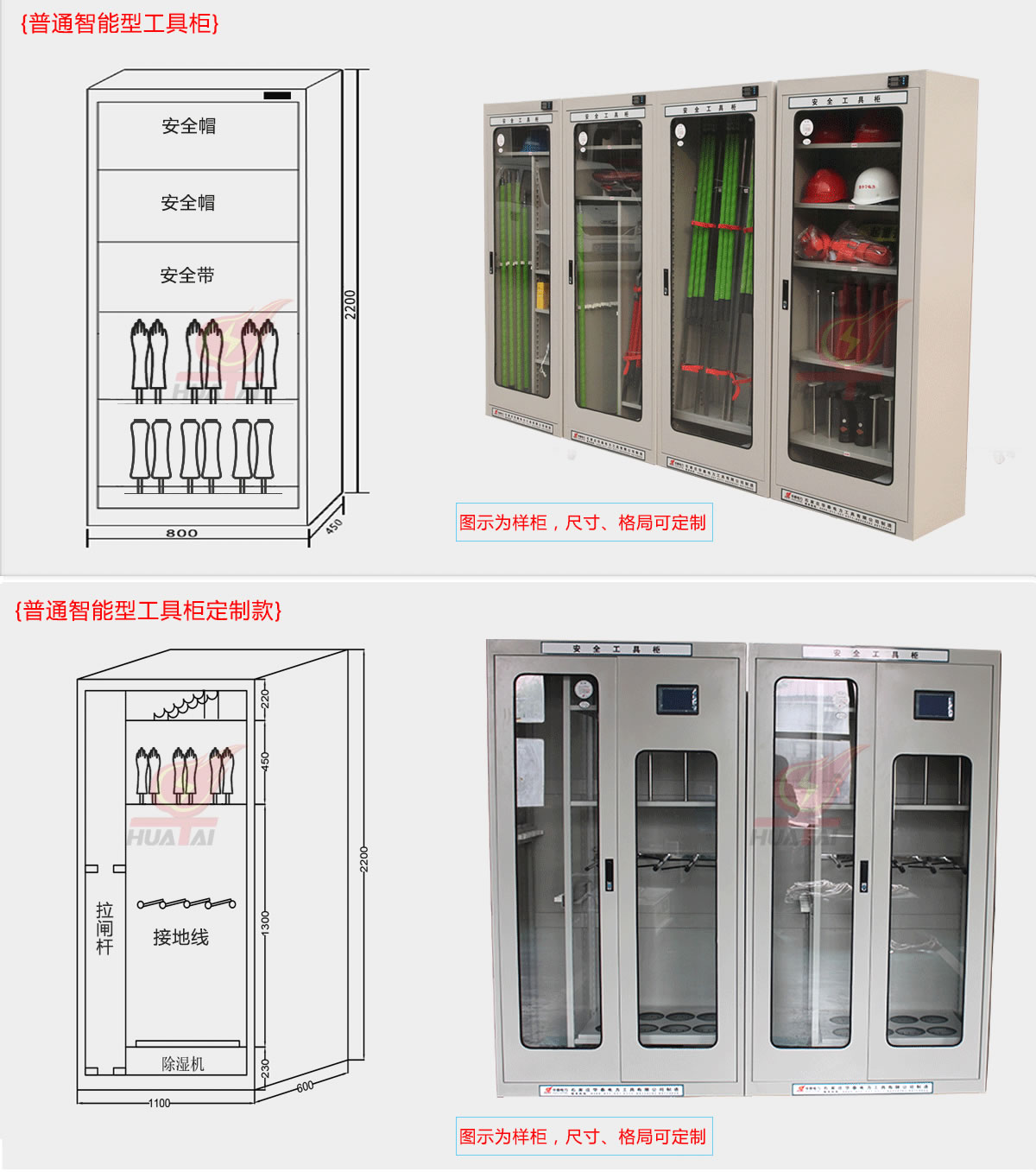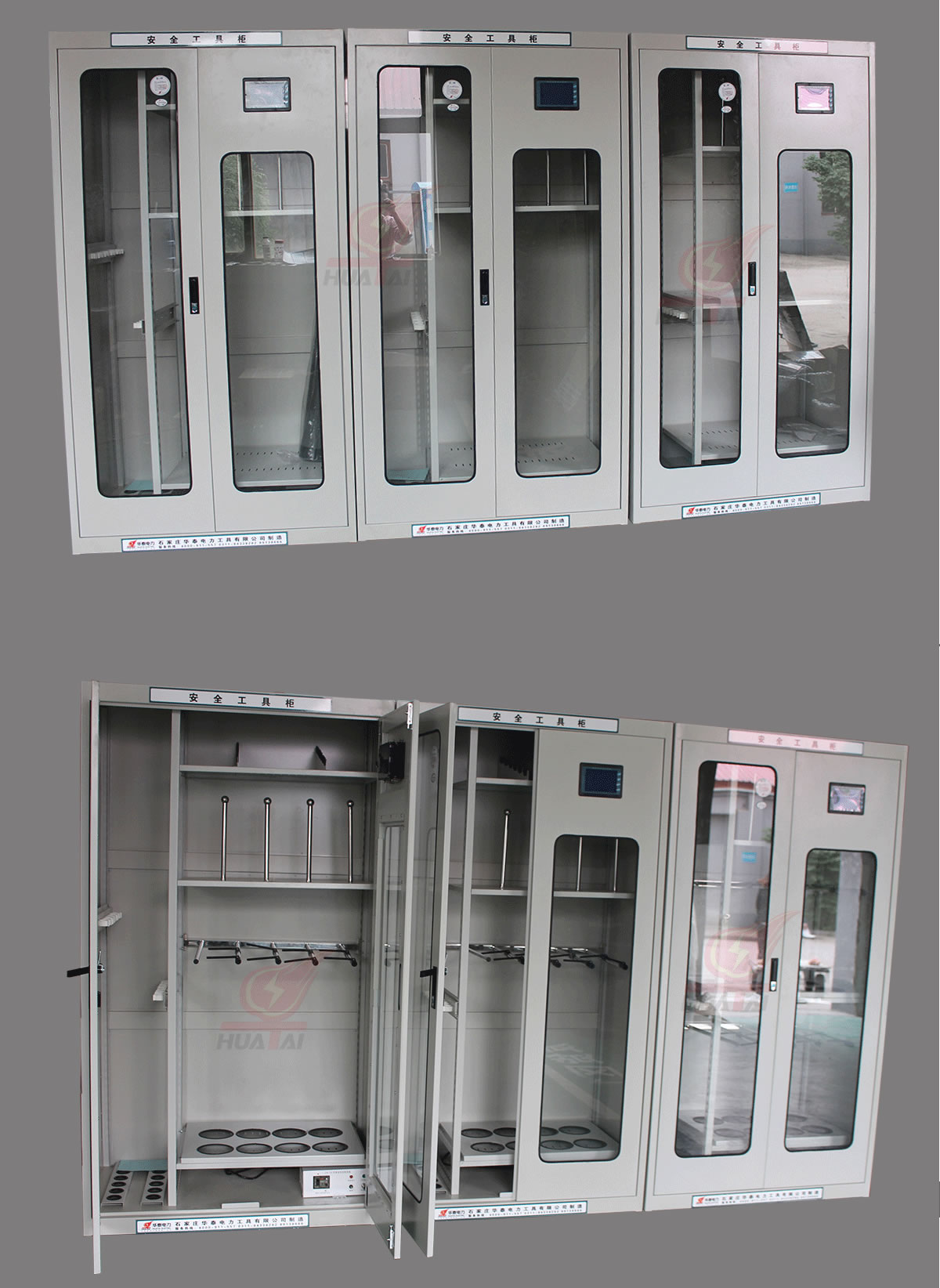 我公司生產的普通型安全工具柜、智能安全工具柜、全智能安全工具柜。經國家電網公司武漢高壓研究所檢驗合格,達到DL/T874-2005《帶電作業用工具庫房》國家標準和Q/RN04-2006《電力安全工具柜》企業標準,于2007年通過河北省科學技術廳組織的科技成果鑒定,已投入批量生產。并可以量身定做、設計圖紙。