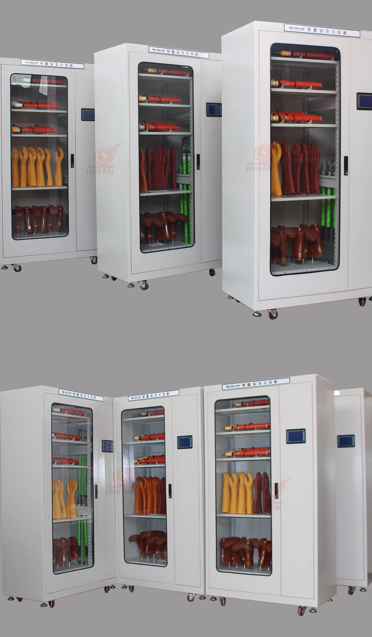 7、 智能安全工具柜-具有對絕緣工具進行標識和分類管理的功能:通過標識和分類避免拿錯不同型號的絕緣工具造成安全事故,能對不同電壓絕緣工具進行有效的管理;智能除濕安全工具柜就選華泰絕緣安全工器具柜!
