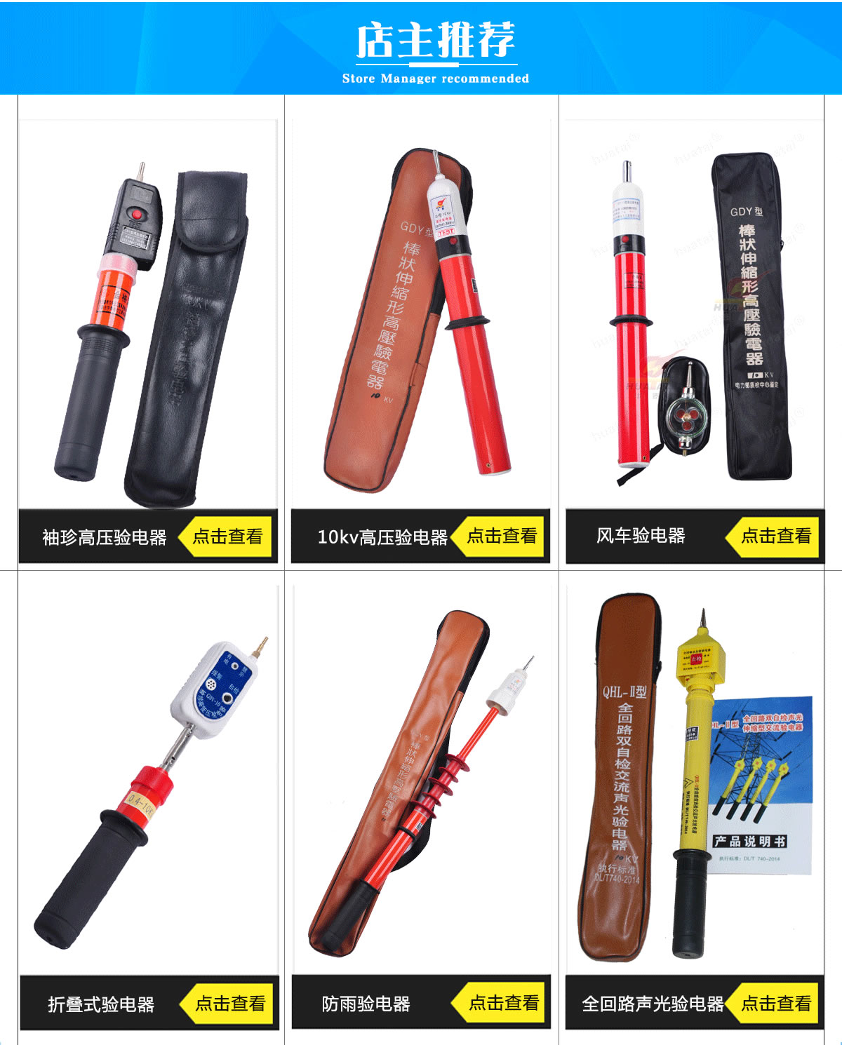| 組合式驗電器 | 10KV、35KV、20KV、110KV、220KV、500KV | 支 | |
