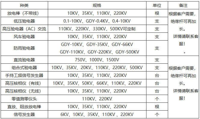 本公司生產的折疊式高壓驗電器,分為0.1kV至500kV七個電壓等級產品,供用戶按實際運行電壓等級選擇訂貨。