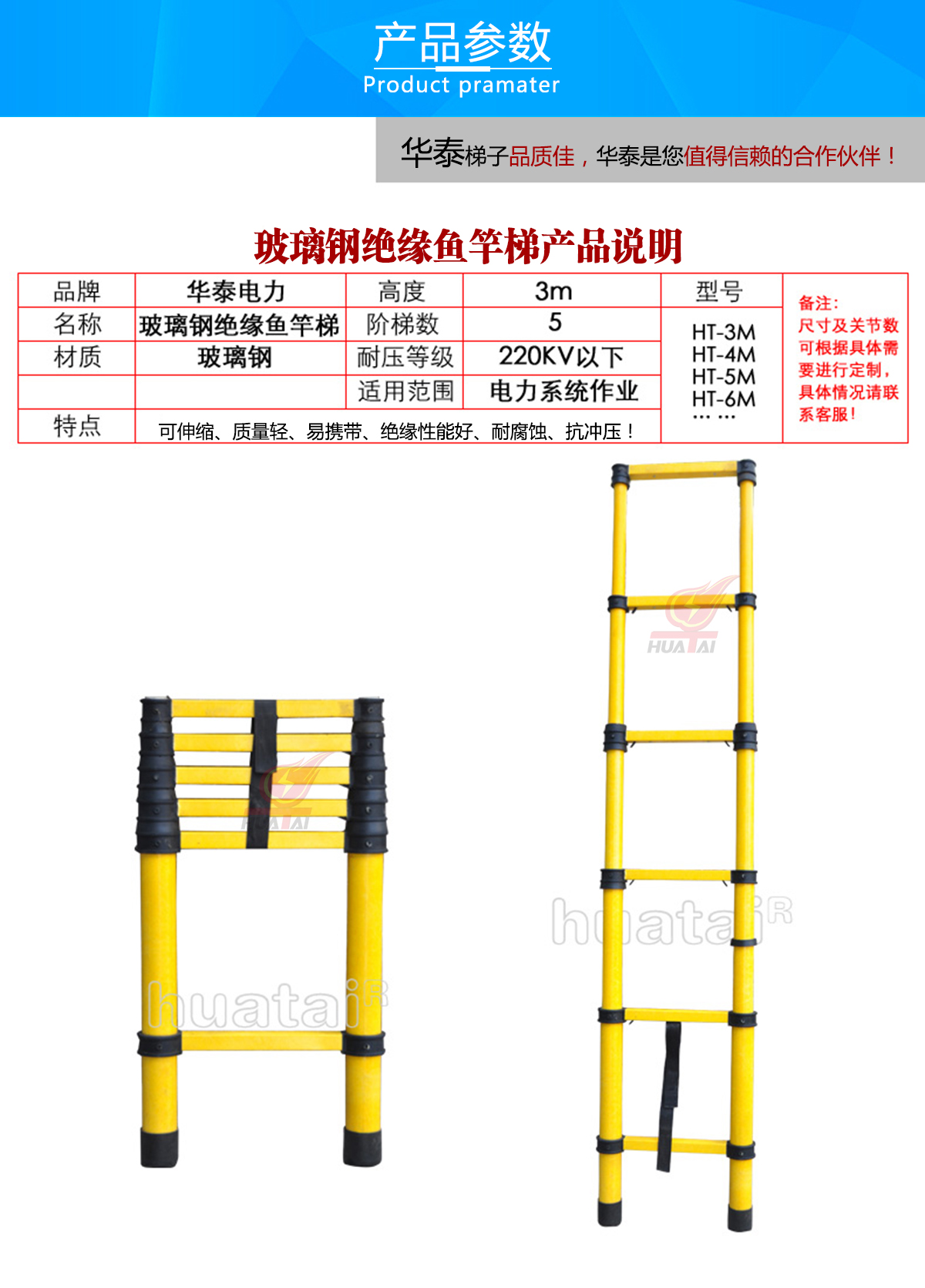 | 魚竿人字梯 | 3米、4米、5米 | 玻璃鋼 | 220kv | |