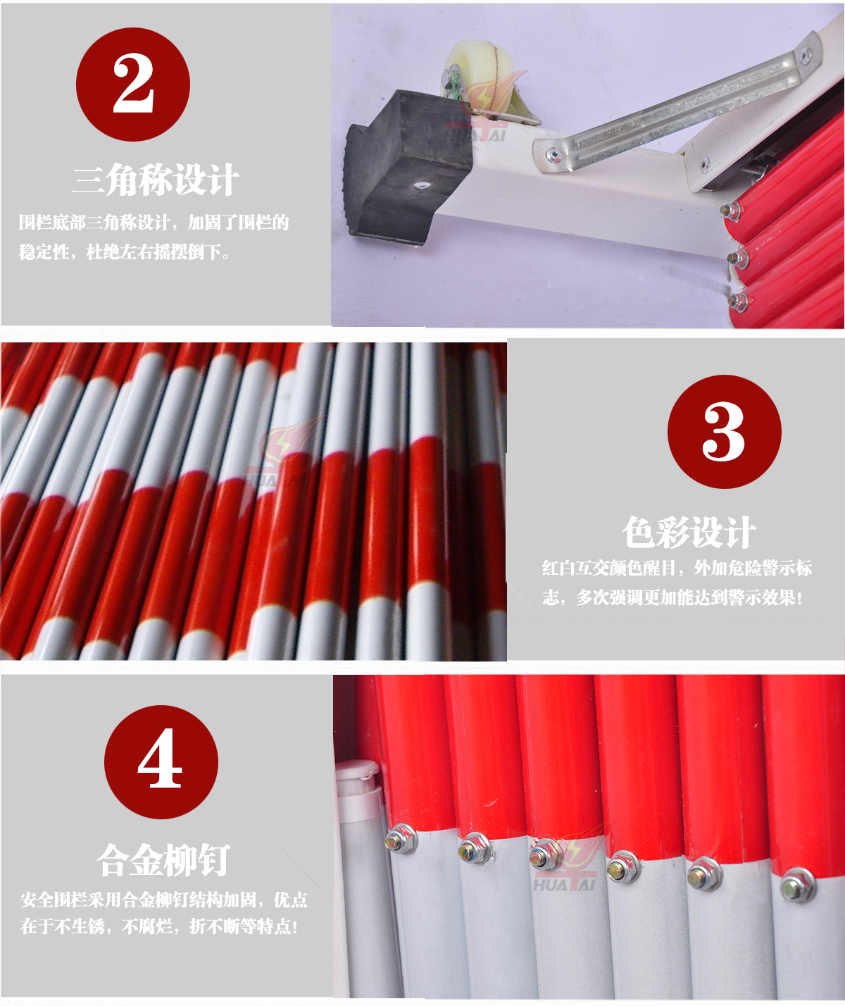 特點(diǎn):伸縮自如,紅白相間,色彩鮮明,絕緣性好,操作簡(jiǎn)單,美觀規(guī)范,實(shí)用性強(qiáng),強(qiáng)度大。