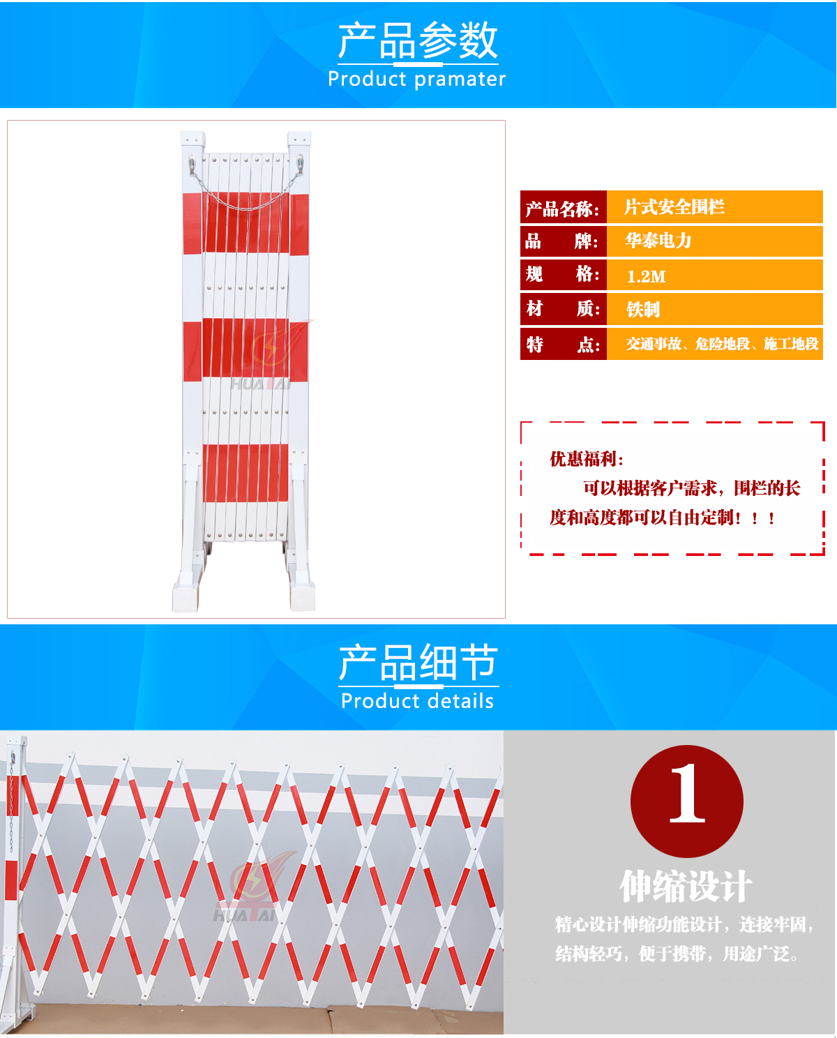 根據(jù)客戶需要、圍欄長度可自由定制!