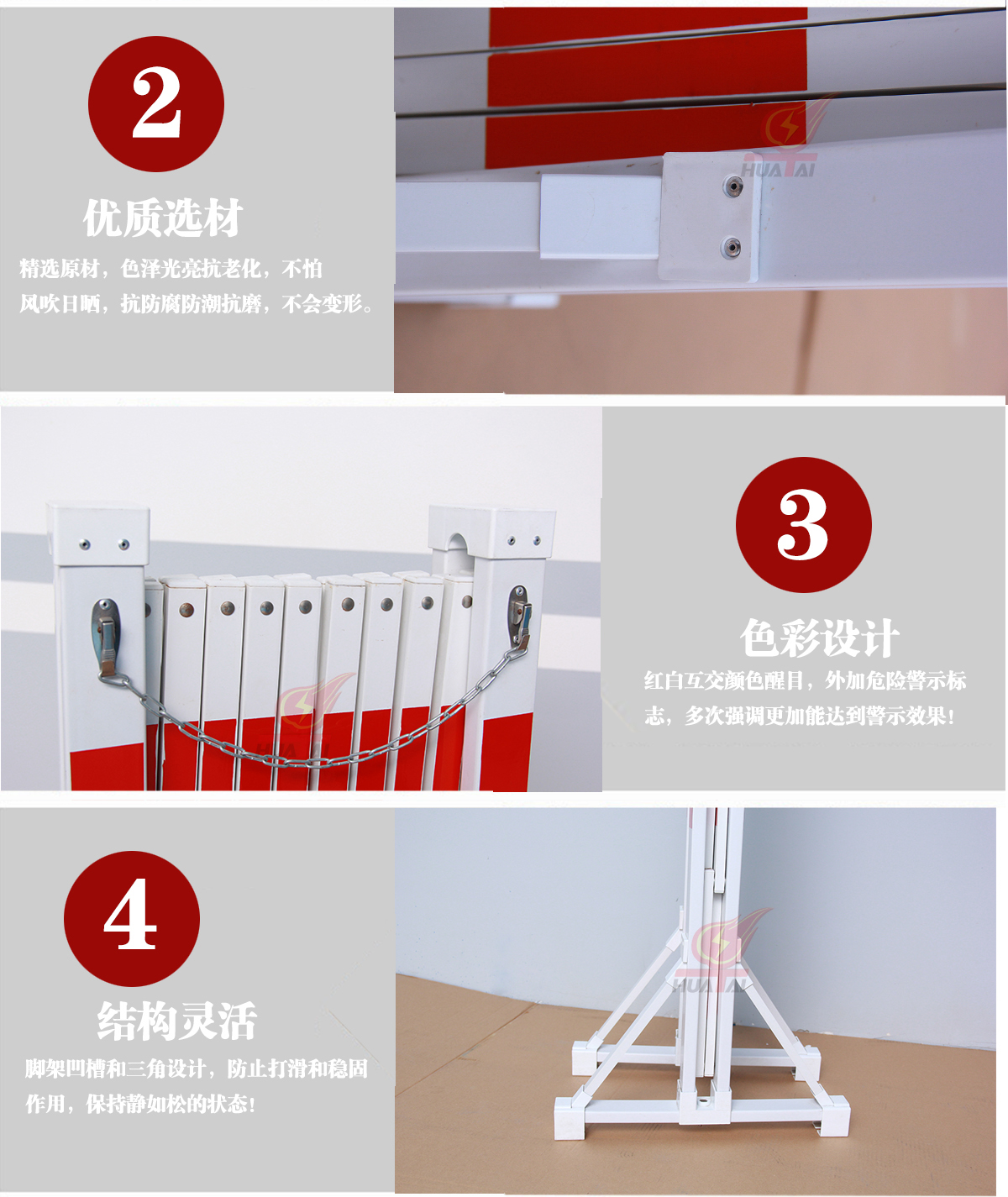 裝設(shè)安全圍欄是保證現(xiàn)場工作人員安全技術(shù)措施之一,主要用于發(fā)電廠,變電站的電氣設(shè)備檢修、電氣實驗、配電檢修等。 整套圍欄由玻璃鋼圍欄片、支撐桿和支座組成。
