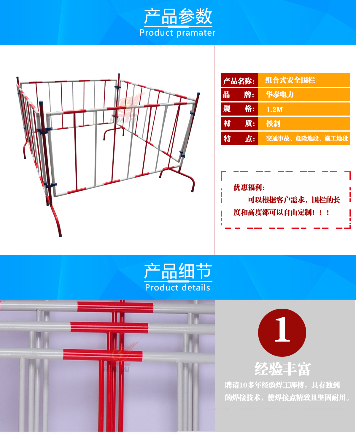 安全圍欄紅白相間,色彩鮮明,絕緣性好,強(qiáng)度大,實(shí)用性強(qiáng) 圍欄的用途:車間隔離用,工廠,電廠等。