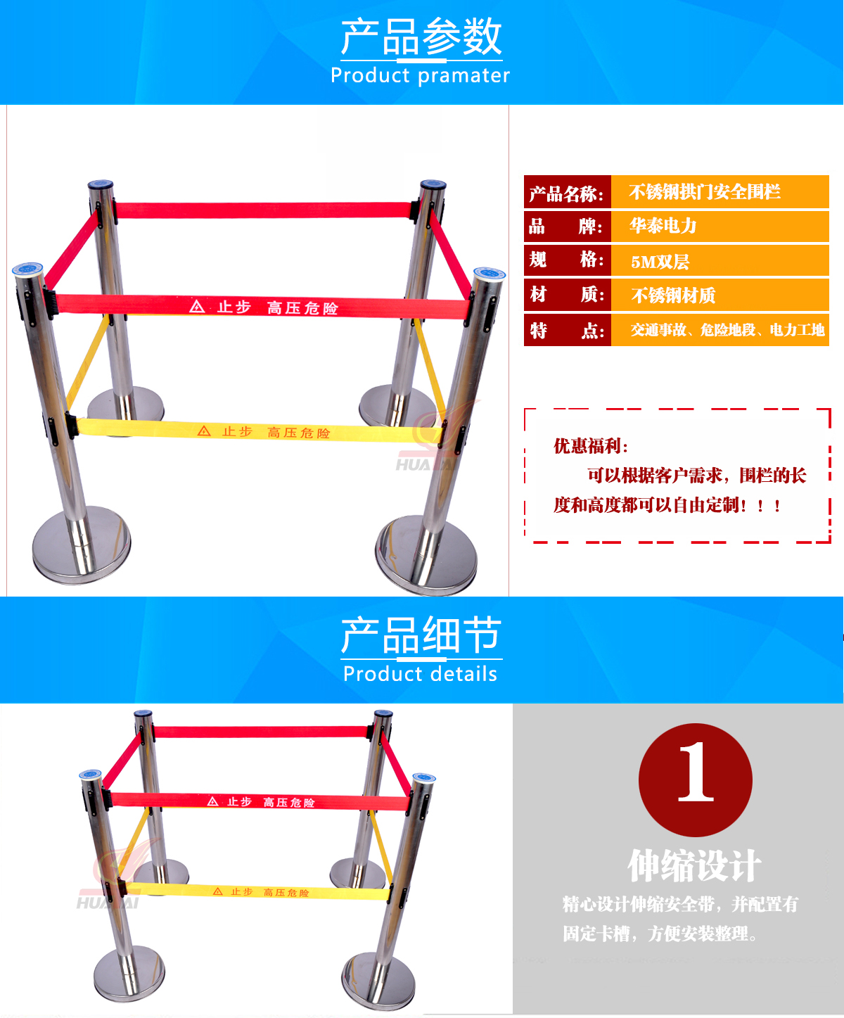 2.這種結(jié)構(gòu)不僅占地空間小,更能讓雙層伸縮一米線隔離帶警示圍欄在實際使用過程中具備以往產(chǎn)品不具備的特性,比如:在平面?zhèn)仍O(shè)計有強力磁鐵,用于吸附在高壓設(shè)備計量器的表殼上,高壓設(shè)備,變壓器,互感器以及計量箱的殼體上。