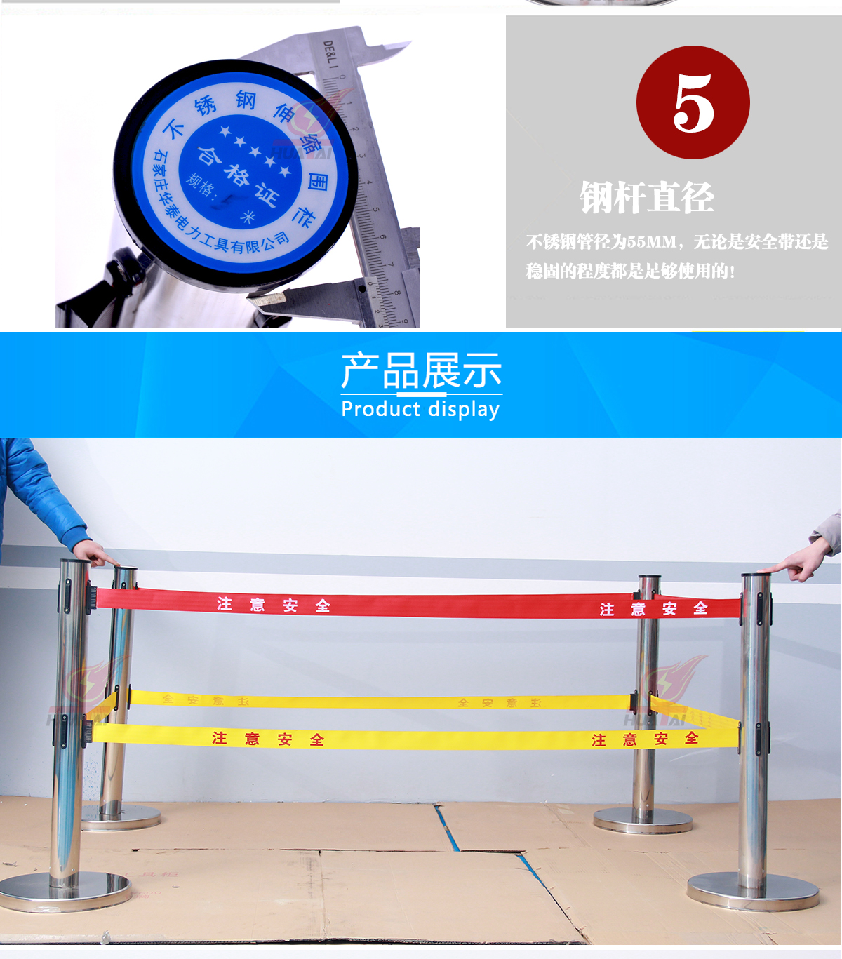 安全警示帶特點:兩條警示帶上有“止步,高壓危險”標(biāo)志,可根據(jù)客戶要求印字;警示帶可以自 由拉出,,并可自動收回。收縮自如,使用方便。