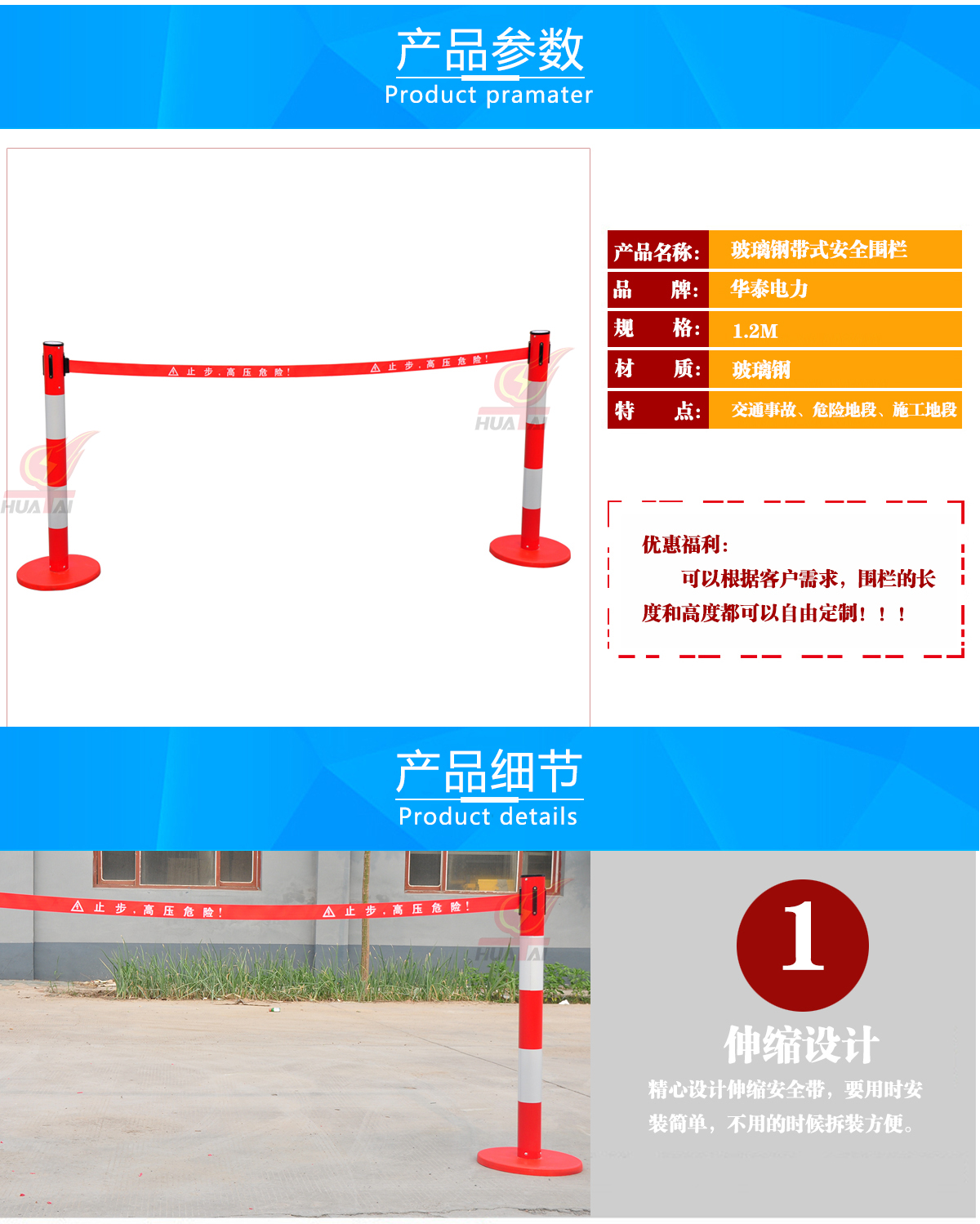 | 玻璃鋼絕緣伸縮圍欄(管式) | 1*2m、1*2.5m、1.2*2.5m、1.2*3m、1.2*3.5m、1.2*4m 1.2*5m、1.5*2m、1.8m*5m | 套 | 根據(jù)客戶(hù)需要、圍欄長(zhǎng)度可自由定制! 詳情請(qǐng)聯(lián)系客服! |