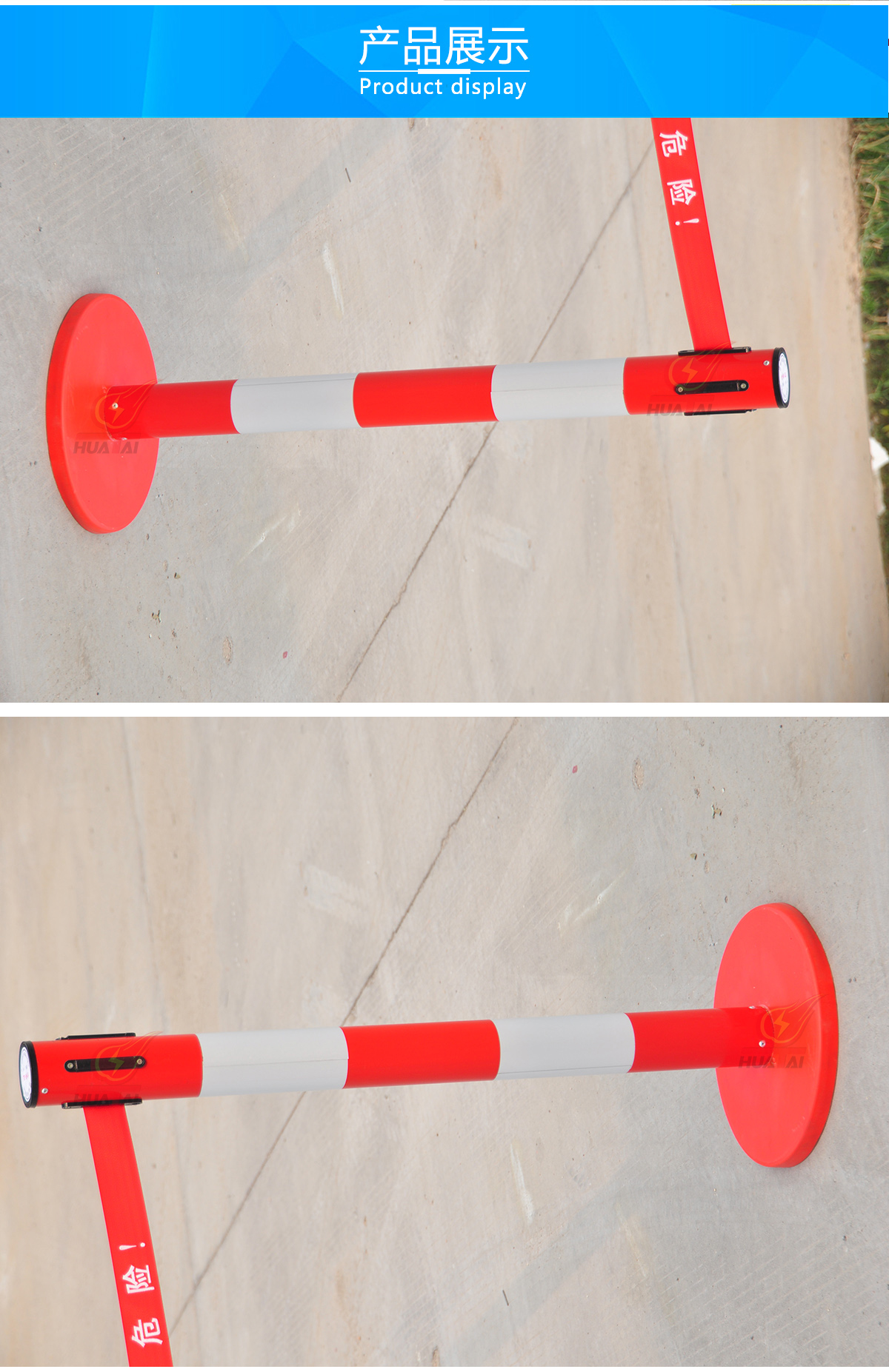 。可以雙層也可以單層帶子,兩層帶子的間距30厘米,一般是上紅下黃,紅色帶子上印