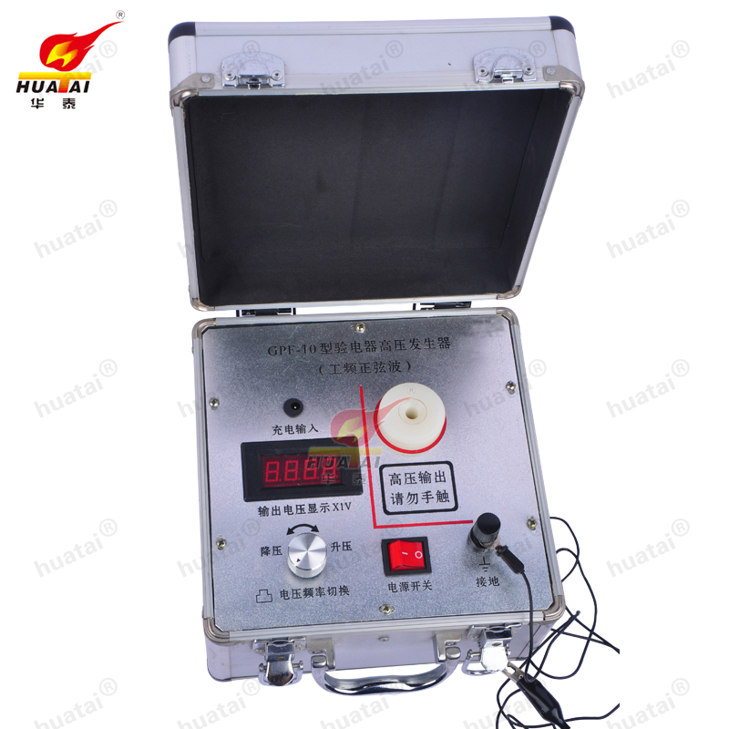 使用時(shí)接通電源,調(diào)壓器調(diào)到零位,將電源開(kāi)關(guān)打開(kāi),一個(gè)人將驗(yàn)電器探頭接觸發(fā)生器高壓輸出,另一人緩緩升高輸出電壓,至驗(yàn)電器聲光報(bào)警,觀察驗(yàn)電器啟動(dòng)電壓是否在規(guī)定范圍內(nèi),使用后調(diào)壓器調(diào)到零位,關(guān)閉電源。自帶電瓶式如果出現(xiàn)無(wú)高壓現(xiàn)象,應(yīng)首先檢查電瓶是否老化。
